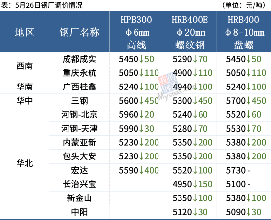 26日,全国11家建筑钢材生产企业下调出厂价30-450元/吨。