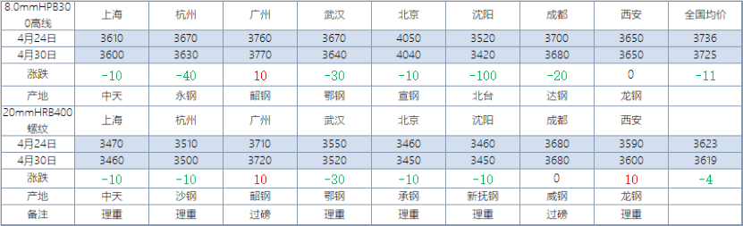 型钢:上周全国型钢市场价格窄幅震荡运行。临近月末市场整体操作保持出货为主,大部分商家在实际成交过程中存在优惠。不过现在来看现阶段到货的资源成本普遍偏高,现货让利空间有限,加之当前社库资源处于持续消化状态,虽然降幅速度有限,但市场心态大多受到一定提振,因此对于报价方面大部分商家多选择观望为主。临近节前市场采购情绪明显不及预期,鉴于成交压力市场谨慎报价,个别低价资源成交较好的区域低位回升。截止上周五收盘,全国14个主要市场平均价格情况:200*100H型钢全国均价3523元/吨,环比下跌2元/吨;300*300H型钢全国均价3625元/吨,环比下跌2元/吨;400*200H型钢3577元/吨,环比下跌2元/吨;588*300H型钢3608元/吨,环比下跌3元/吨;5#角钢3787元/吨,环比下跌1元/吨;16#槽钢为3702元/吨,环比上涨2元/吨;25#工字钢为3748元/吨,环比上涨1元/吨。对于节后市场,第一时间从供应方面来看,近期长流程企业减产情况较少,但考虑到市场长期处于萎靡及低价销货状态,因此对于指导价格到多保持坚挺态度。而调坯企业方面由于利润有限,坯料价格始终保持坚挺,因此同样对于指导价格维持力挺态度。至于市场方面,虽然社库资源有所消化,但相较于往年同期仍处于偏高水平,终端需求采购情况并不急于备货,大多保持按需采购,因此市场即便有意修复价格但缺乏有效的成交支撑。综合预计,节假日期间部分区域报价或小幅度上调,调后维持盘整,而绝大多数区域将盘整报价迎接五一假期的到来。