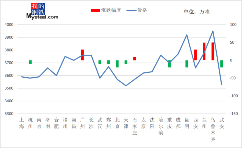 型钢:唐山型钢价格稳中趋强,工字钢角钢涨10-20,槽钢稳。现主流钢厂报价工字钢3400,角钢3400-3410,槽钢3390。晨起钢坯领涨刺激型材部分跟涨,市场交投氛围较昨好转,低价资源尚可,整体成交表现一般。